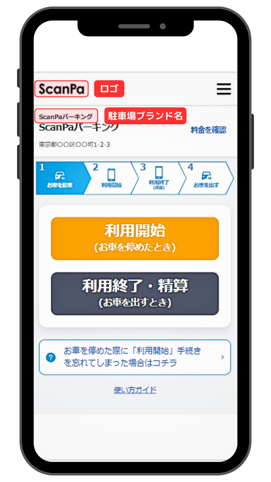 駐車場ブランド名 | 「〇〇パーク」等、貴社駐車場ブランド名を入力してください。 | ✔️表示 |