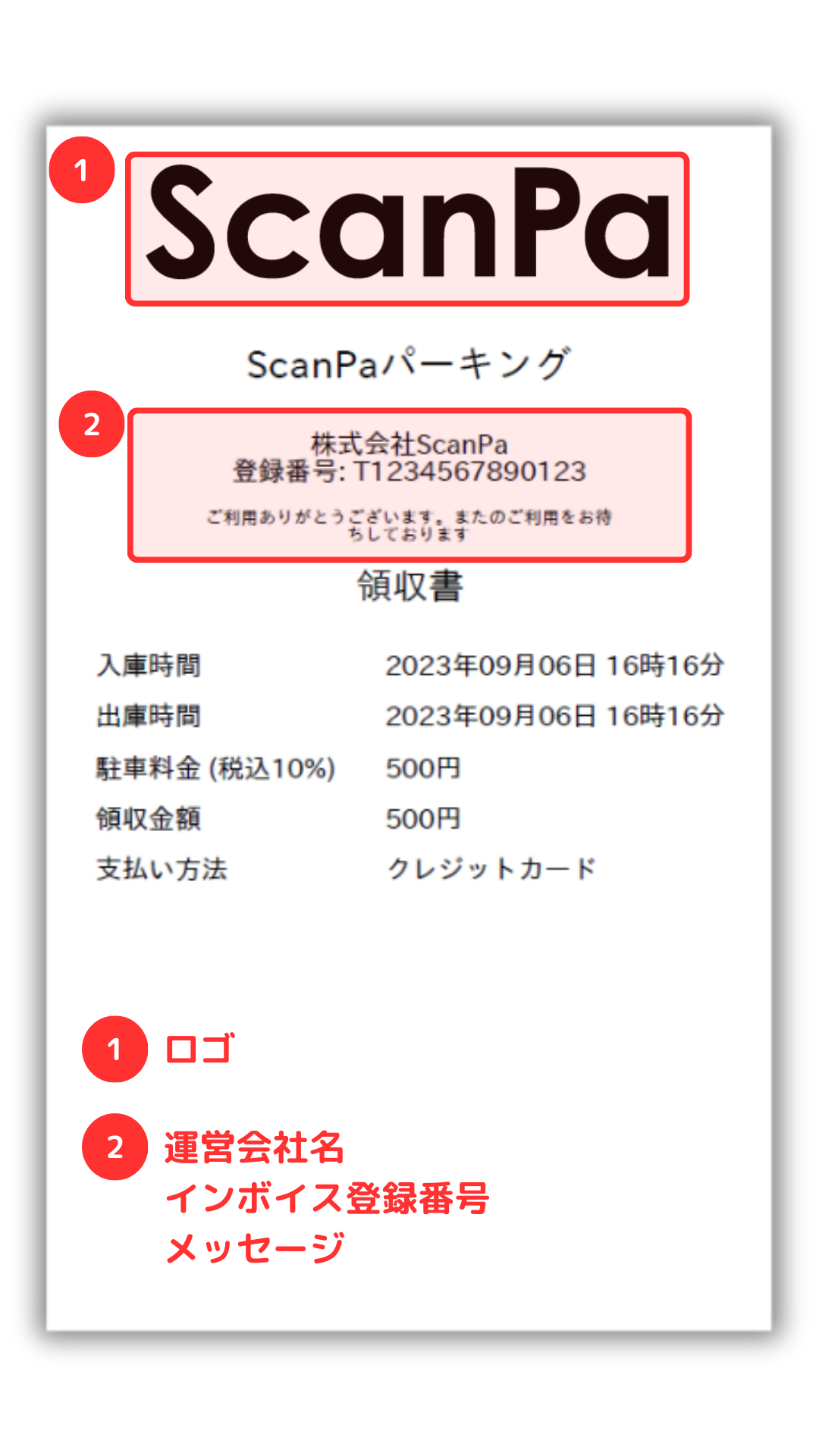 メッセージ | 領収書に記載するメッセージを入力してください。 | ✔️表示(※領収書に記載) |