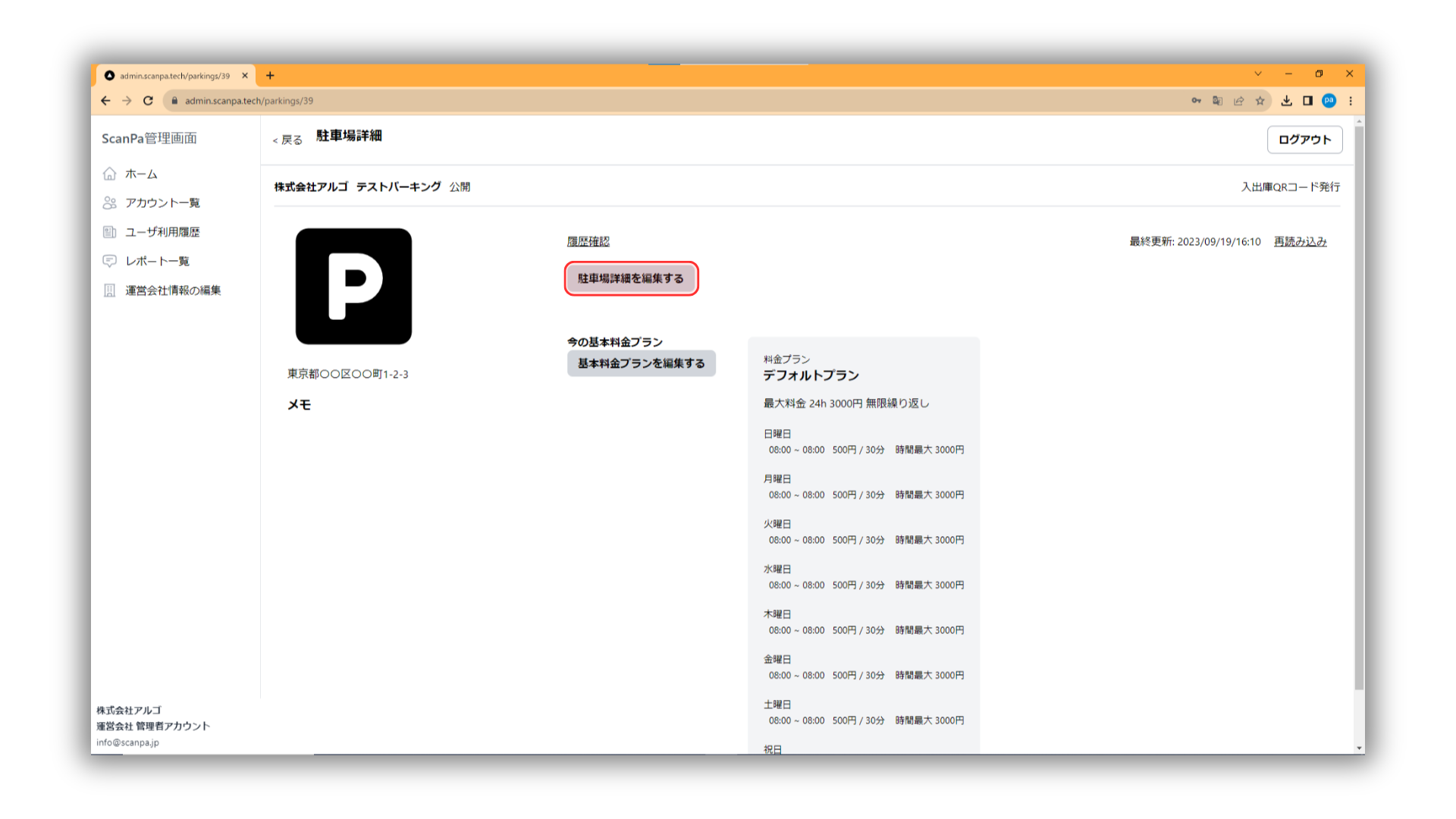 ②駐車場詳細を編集するをクリックする。