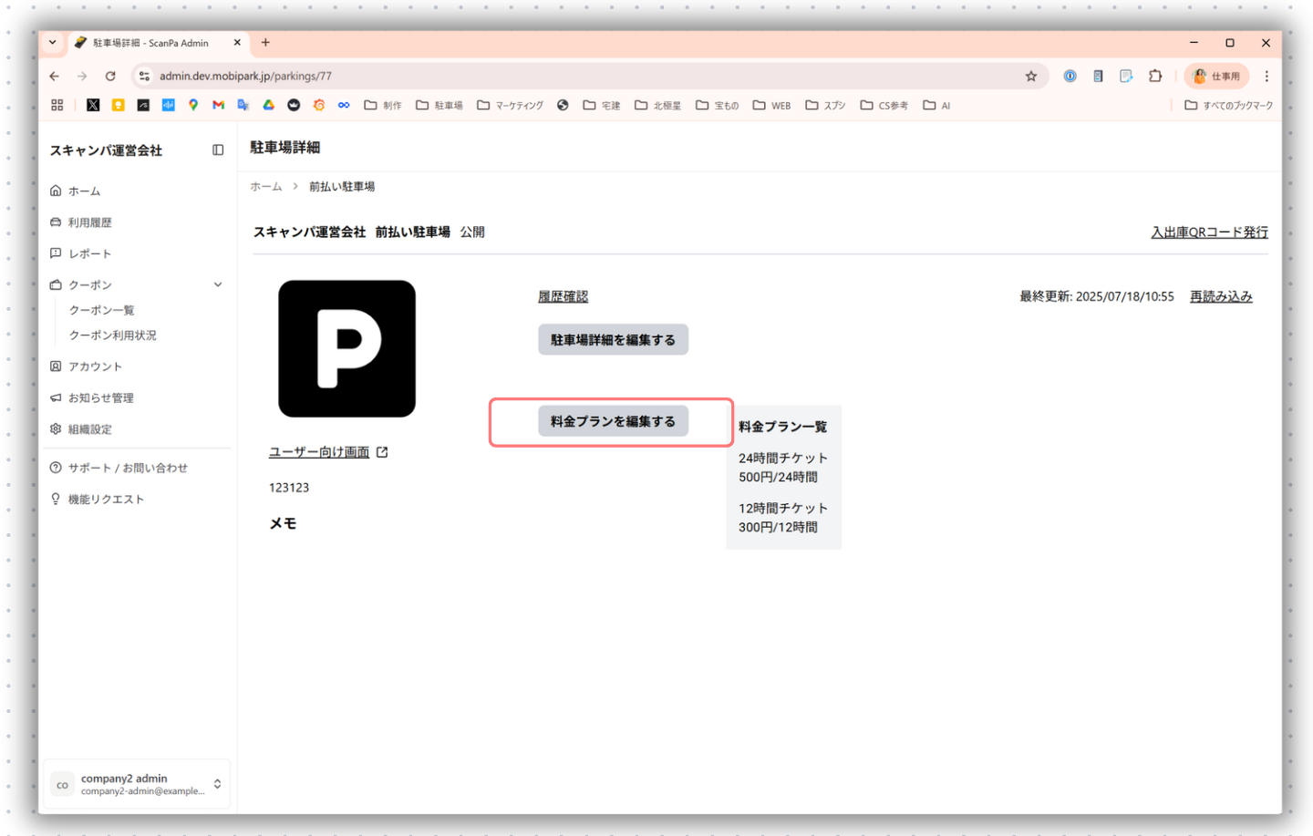 ①対象の駐車場を選択し、料金プランを編集するを選択