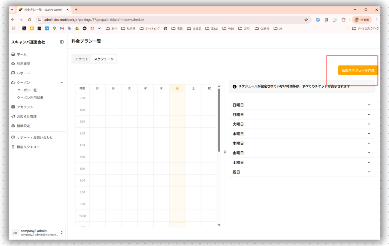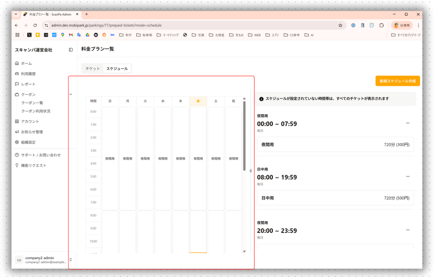 特定の曜日・時間帯ごとに、チケット(前払い)を表示するかどうかを制御するための機能です。これにより、「平日朝だけ」「土日だけ」など柔軟なスケジュール設定が可能です。