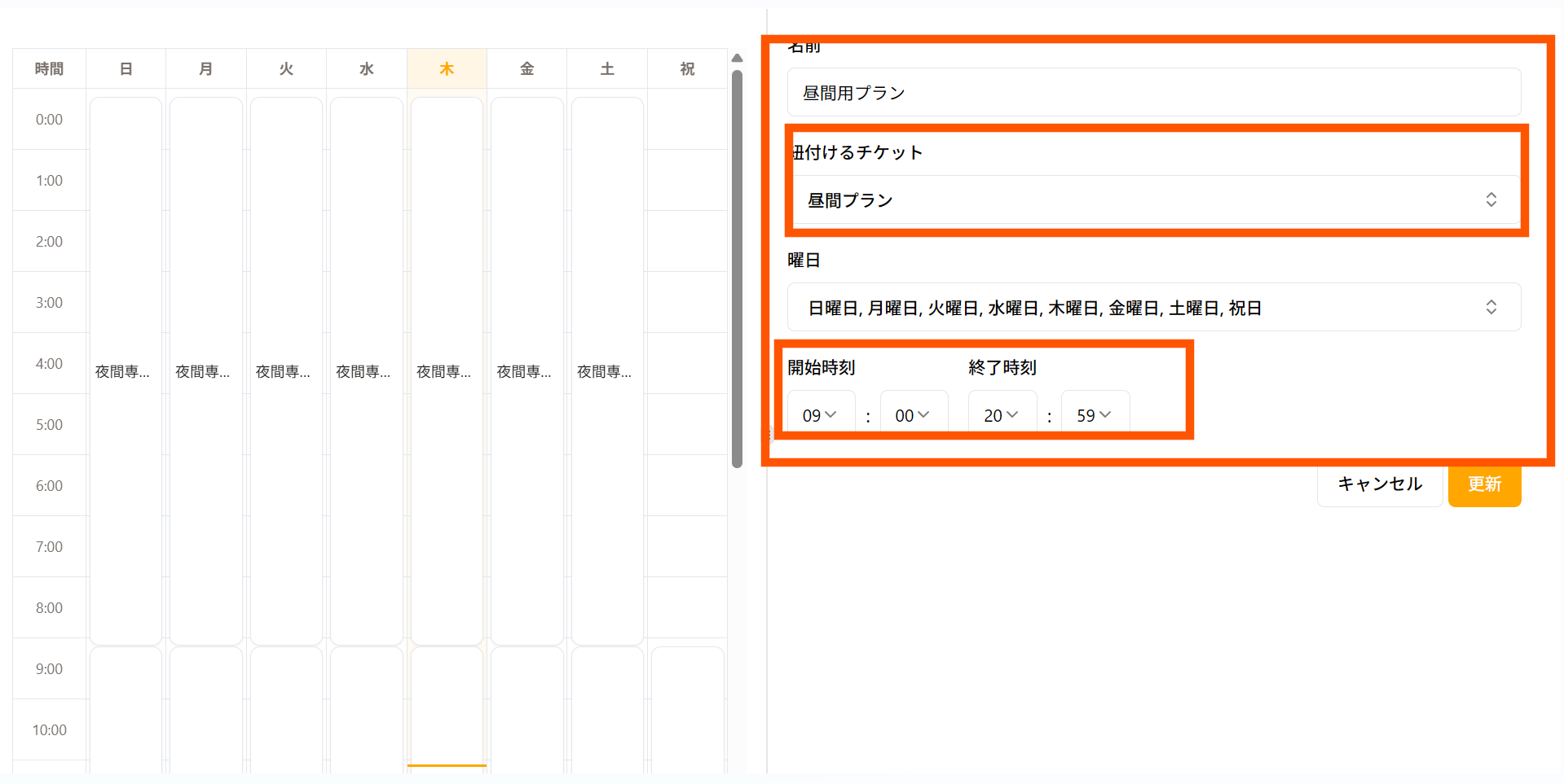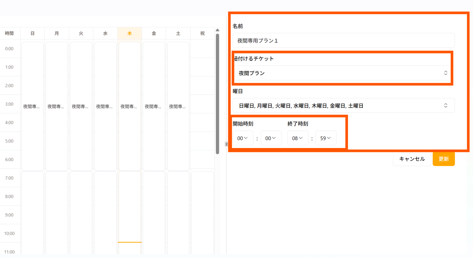 夜間料金や営業時間に合わせた時間制限付きの前払いチケットを作成できるようになります。